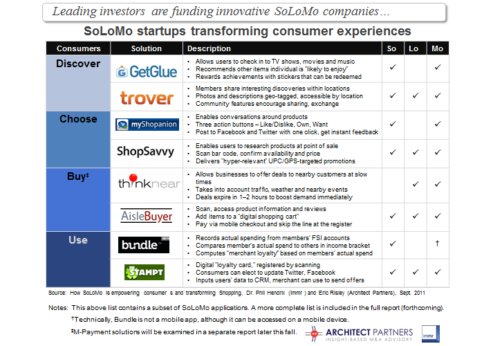The confluence of Social, Local and Mobile, or SoLoMo as VC John Doerr of KPCB refers to it, is empowering consumers, transforming shopping and creating disruptive new opportunities for businesses, especially Advertisers and Retailers. Building on our previous work (see Location - the Epicenter of Mobile Innovation, Feb. 2010), the brief discusses key developments and outlines the implications and impact of SoLoMo on M-Commerce.